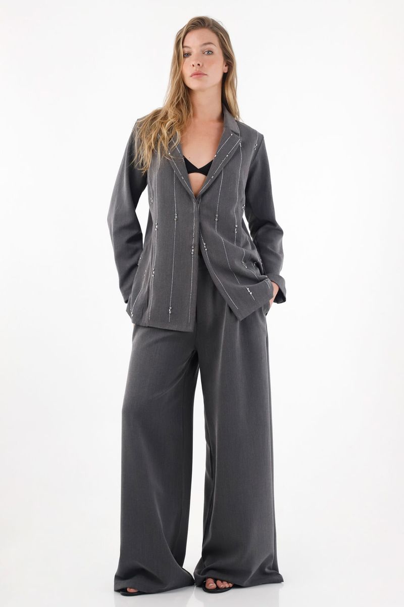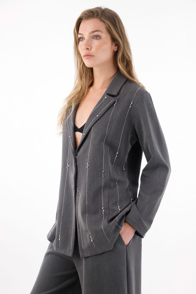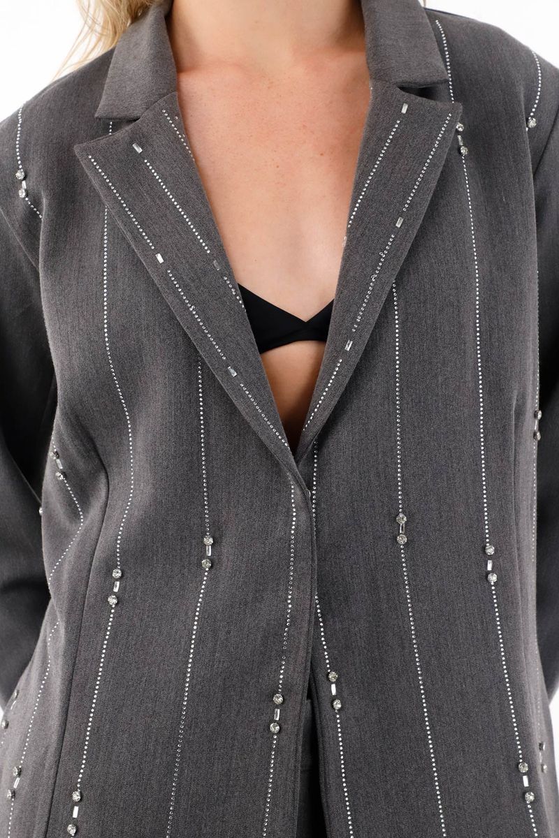 Abrigo tipo blazer con apliques de brillo gris para mujer