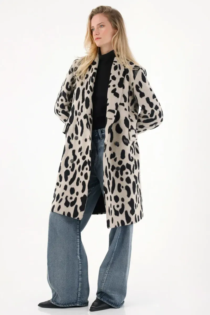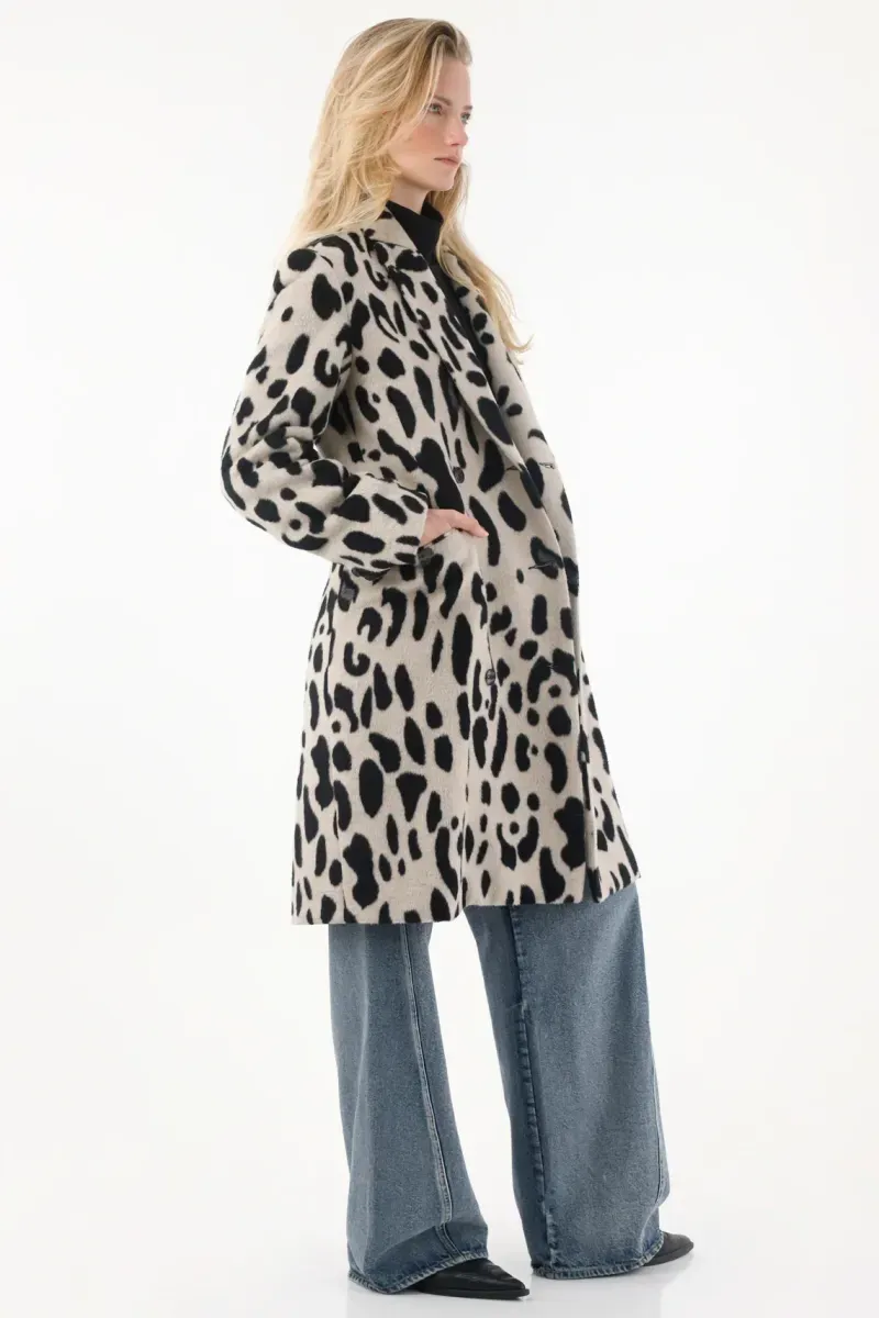 ¡Más elegante e imponente que éste: ninguno! Su estampado tipo animal print eleva los outfits formales con un giro moderno y atrevido—perfecto para usar como capa sobre vestidos satinados, trajes monocromáticos o conjuntos minimalistas que necesiten un golpe de personalidad. Confeccionado en paño estampado, de caída estable y textura cálida, este abrigo largo incorpora botones frontales y manga larga que mantienen la estructura refinada. Su silueta amplia funciona como capa y permite combinarlo con prendas más voluminosas sin perder la línea sofisticada. Sobre la colección: Una pieza clave dentro del espíritu de fin de año y con vibras únicas de medianoche. Siéntete fuerte, segura y lista para dominar con estilo tus mejores planes de la temporada.
