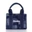 Bolso confeccionado en denim. Bordado en frente. Con cargadera y correa larga ajustable.