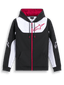 Capucha forrada de malla, cordones técnicos, puños y dobladillo de canalé.