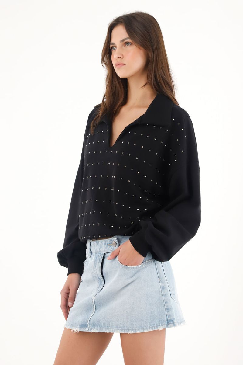 RopaMujerBuzosBuzo en burda con aplique brillantes negro para mujer