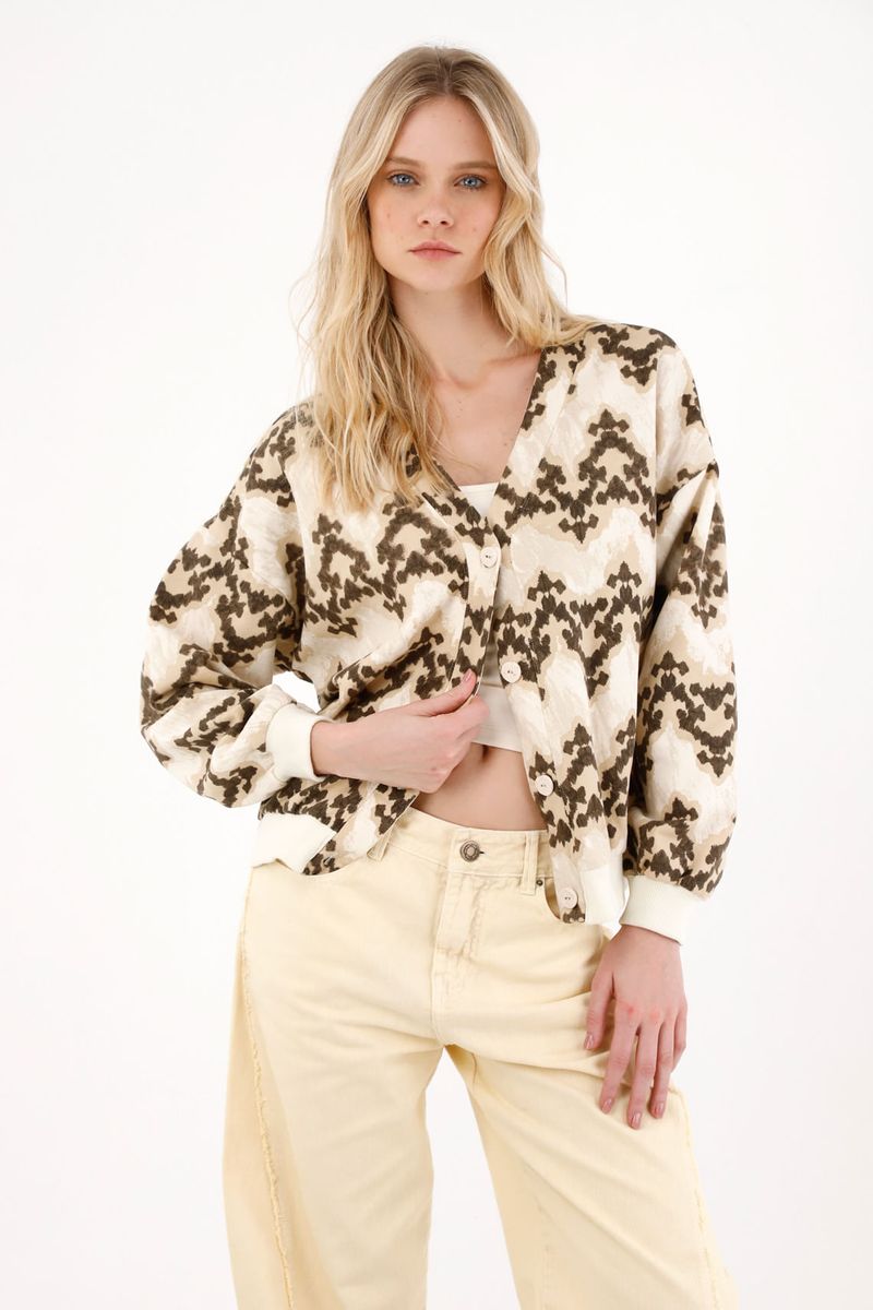 ¡Este cárdigan no es cualquier básico! Su estampado abstracto y botones artesanales lo hacen una pieza con carácter y full personalidad.