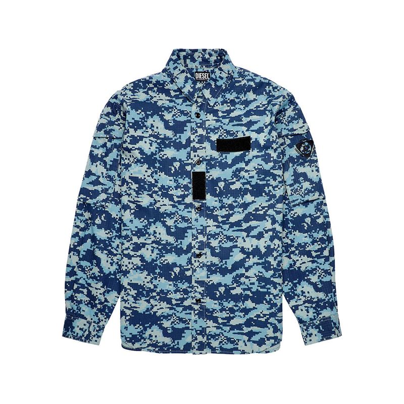 Diesel es una innovadora marca internacional de estilo de vida que produce una amplia colección de jeans, ropa y accesorios. Somos pioneros en denim y con el pasar de los años nos convertimos en una marca de ropa casual premium, siendo una verdadera alternativa en el mercado de lujo establecido. Somos una marca que representa la pasión, la individualidad y la autoexpresión. El Mundo DIESEL te espera. Esta camisa está confeccionada en ripstop lavado con un estampado de camuflaje pixelado. De corte regular, tiene detalles de parches con velcro y bolsillos en las mangas, uno de los cuales tiene el motivo del logotipo bordado. 100%Algodón País Origen: China El modelo viste una talla L y mide 182 cm