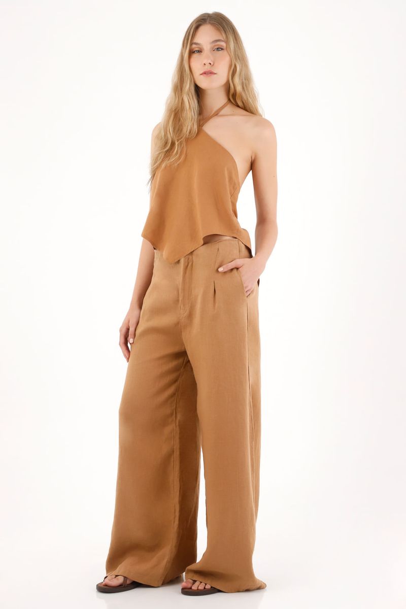 Camisa con escote halter café para mujer
