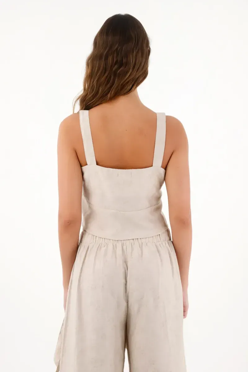 ¡Un básico que se transforma en statement! Este crop, ideal para elevar looks de día o de noche, te dará esa mezcla perfecta entre estructura y frescura que buscas.