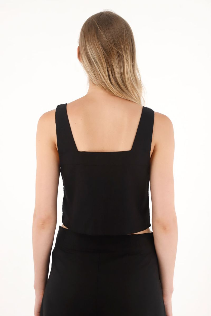 RopaMujerBlusas y CamisasCamisa crop en 100% lino negra para mujer