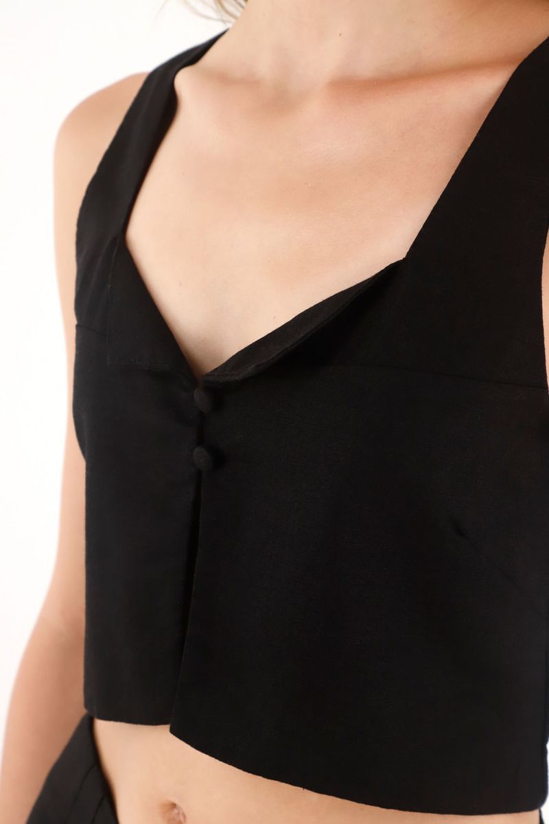 Camisa crop en 100% lino negra para mujer