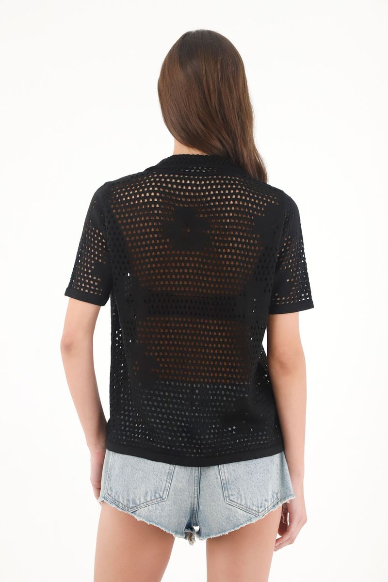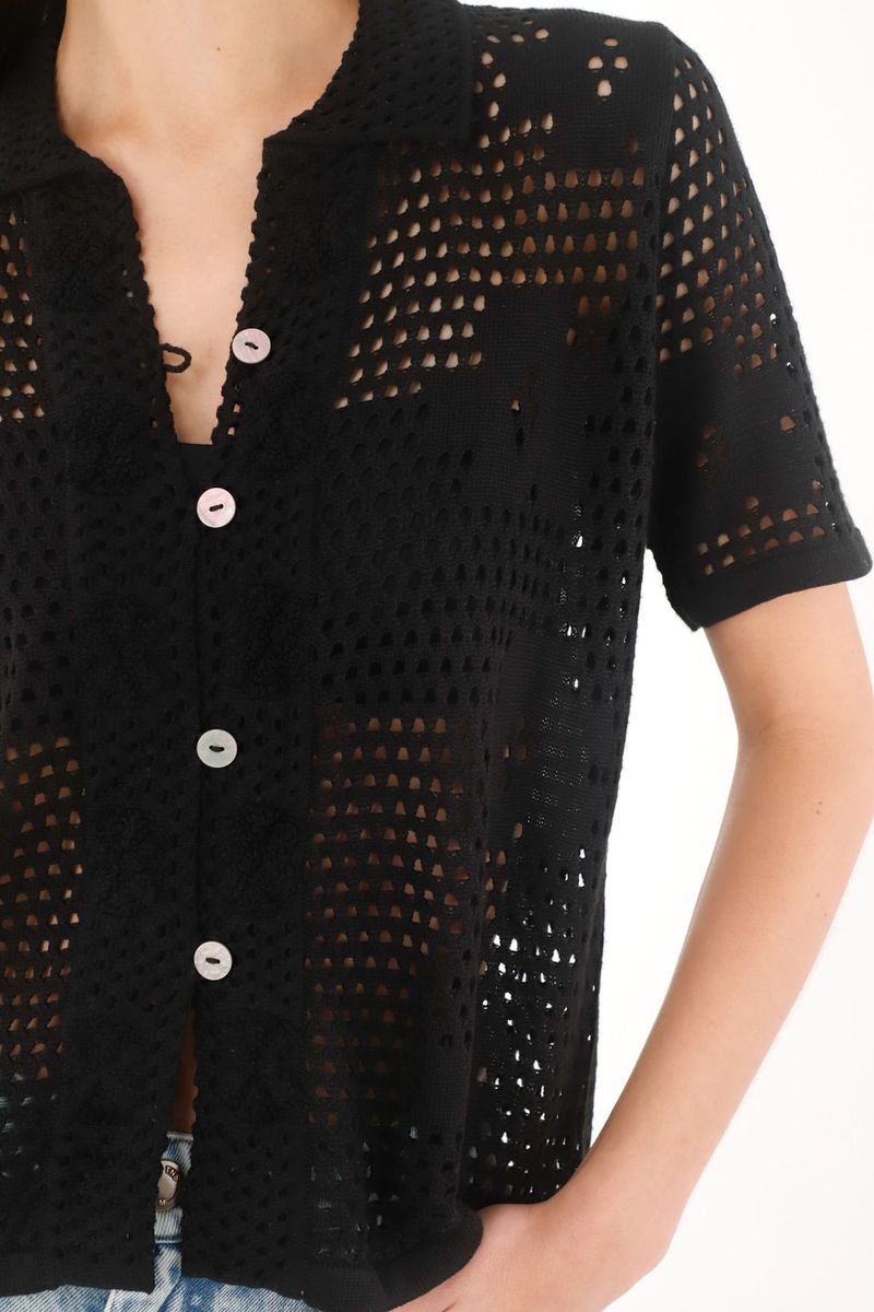 RopaMujerBlusas y CamisasCamisa en tejido abierto con flores negra para mujer
