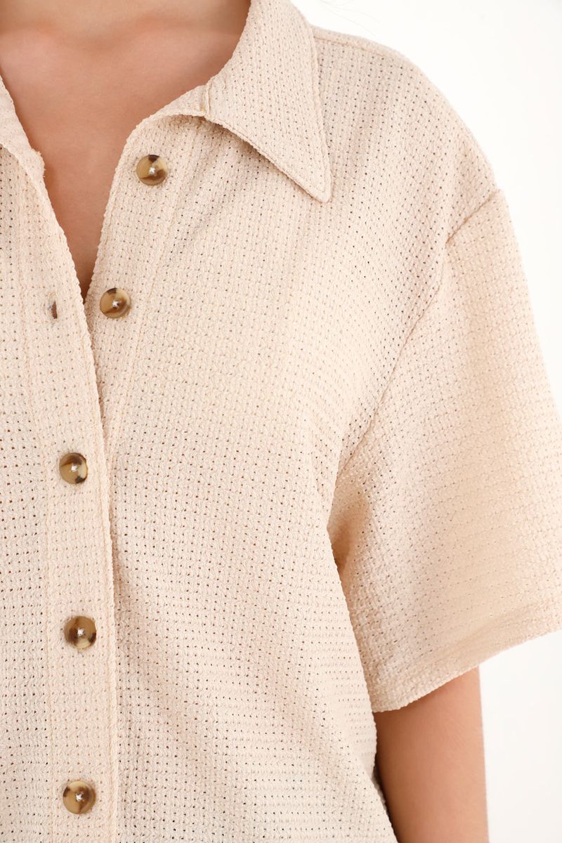 ¡Clásica y natural! Esta camisa con cuello clásico y detalles minimalistas es ideal para tus días casuales.