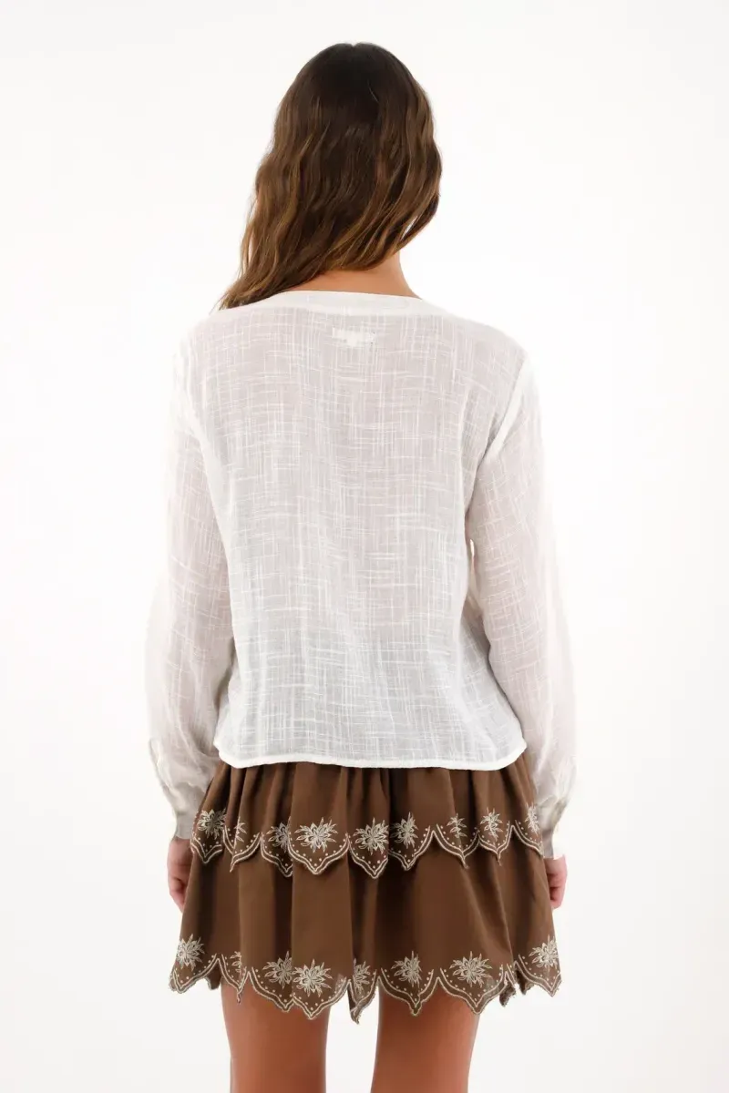 ¡Tan femenina y delicada como tú! Esta camisa está lista para convertirse en tu favorita de la temporada más boho del año.