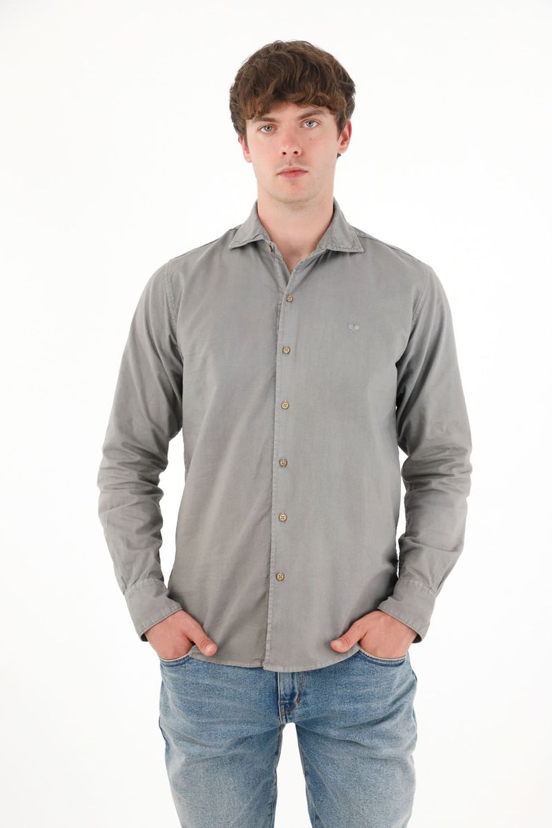 Camisa manga larga gris para hombre