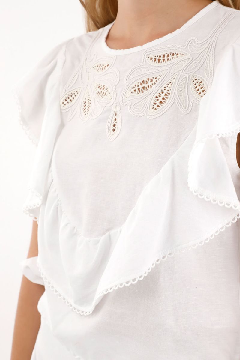 ¡Si crees que no lo tiene todo, vuélvela a mirar! Esta camisa en apariencia lino con una textura fresca, detalles bordados y un bolero que roba miradas, se convertirá en tu mejor complemento para los planes especiales.