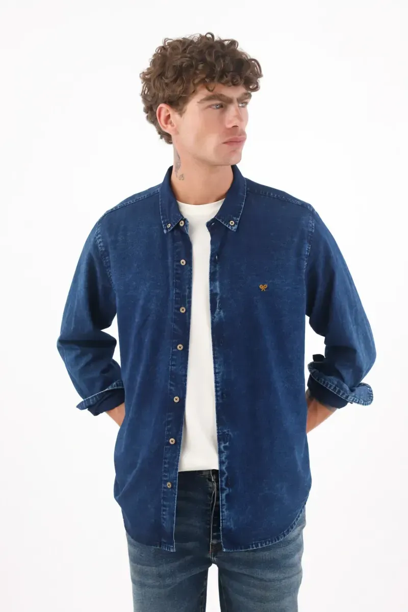 Esta camisa de manga larga TNS trae ese azul lavado que cuenta historias. Confeccionada en 100% algodón de aspecto denim, su corte relajado cae con naturalidad y se siente libre todo el día. El lavado índigo aporta profundidad y movimiento visual, mientras que los botones metálicos al frente suman un guiño utilitario. Un pequeño bordado en el pecho pone la firma sutil que la hace única. Es una camisa denim para hombre pensada para la ciudad: fácil, funcional y con carácter.