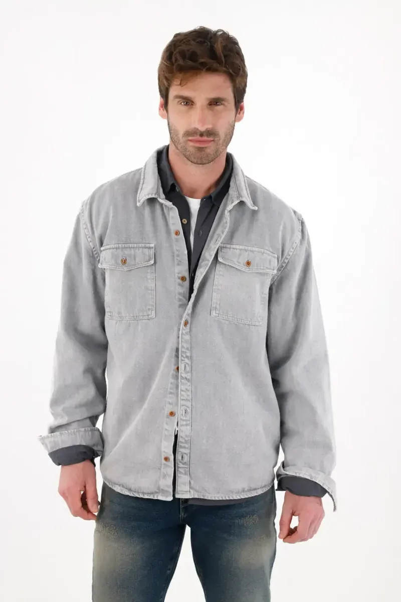 Camisa para hombre tennis, camisas entero manga larga. color: gris. hecho en material total: algodon 100%