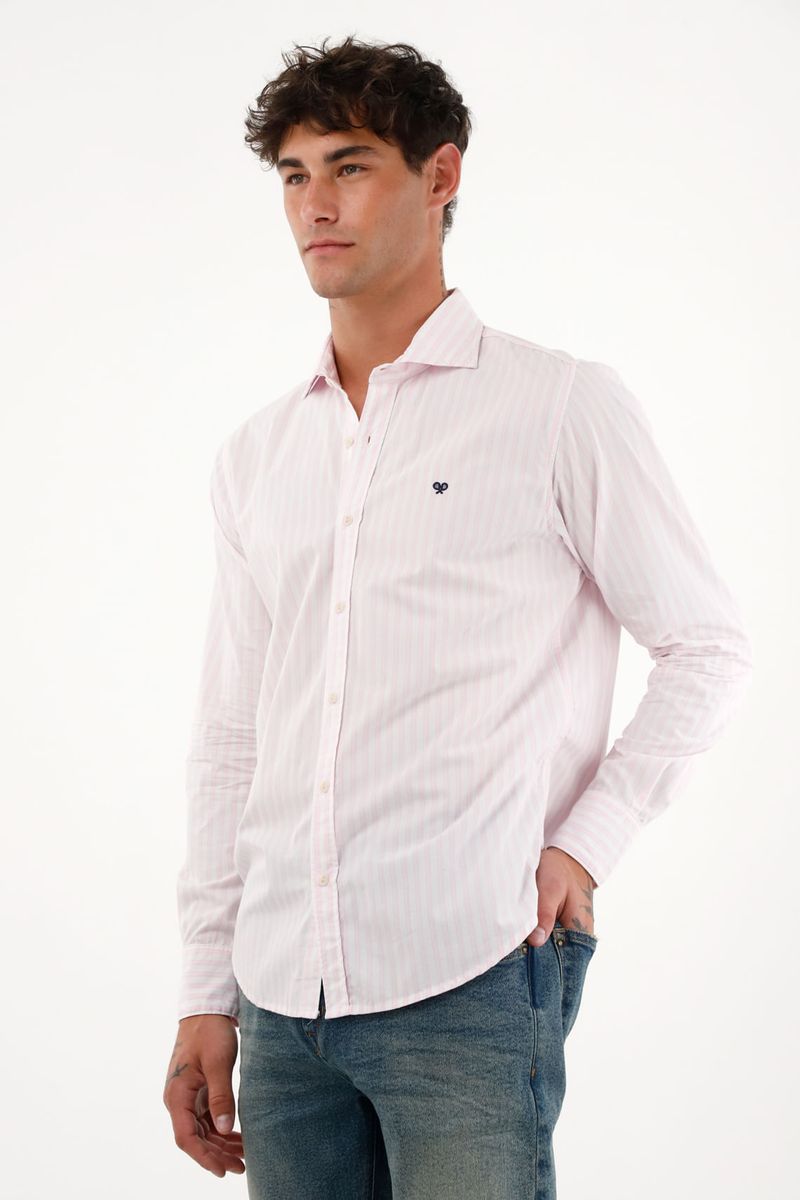 RopaHombreCamisasCamisa rosada a rayas para hombre