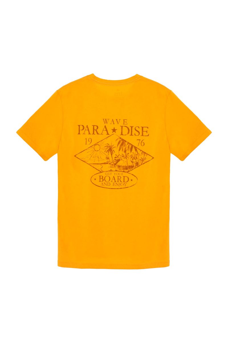 Camiseta amarilla estampada en espalda para hombre