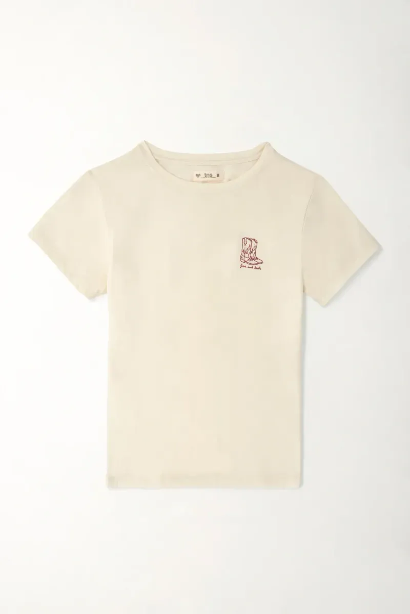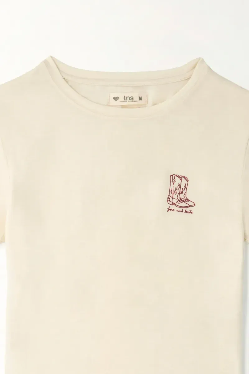 RopaMujerCamisetasCamiseta básica con estampado de botas texanas crudo para mujer