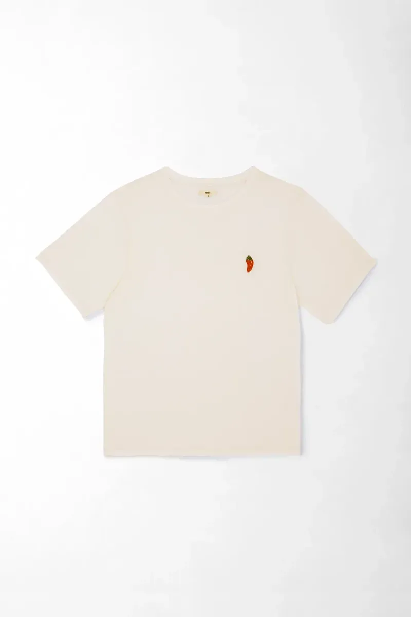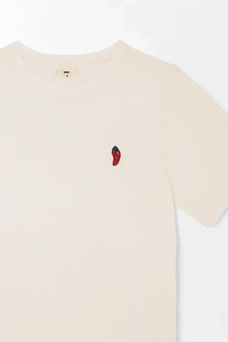 Camiseta con bordado de ají para mujer