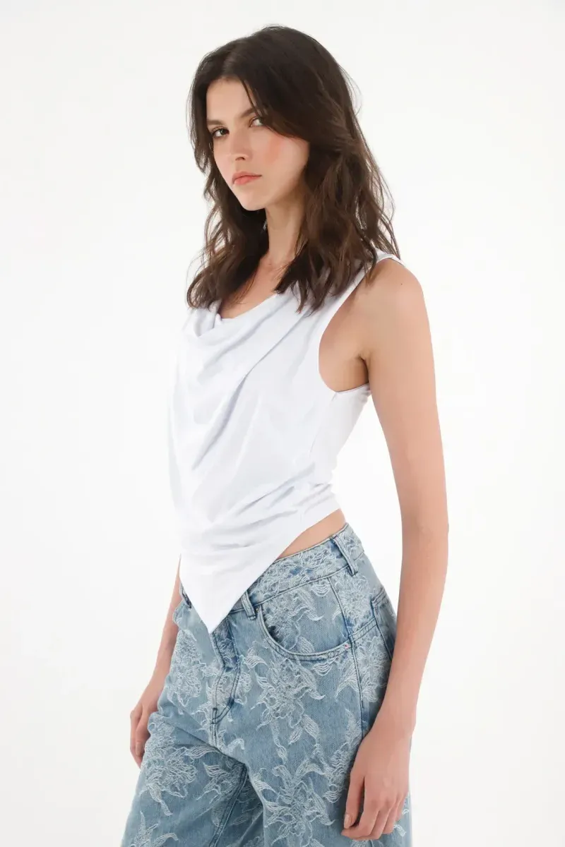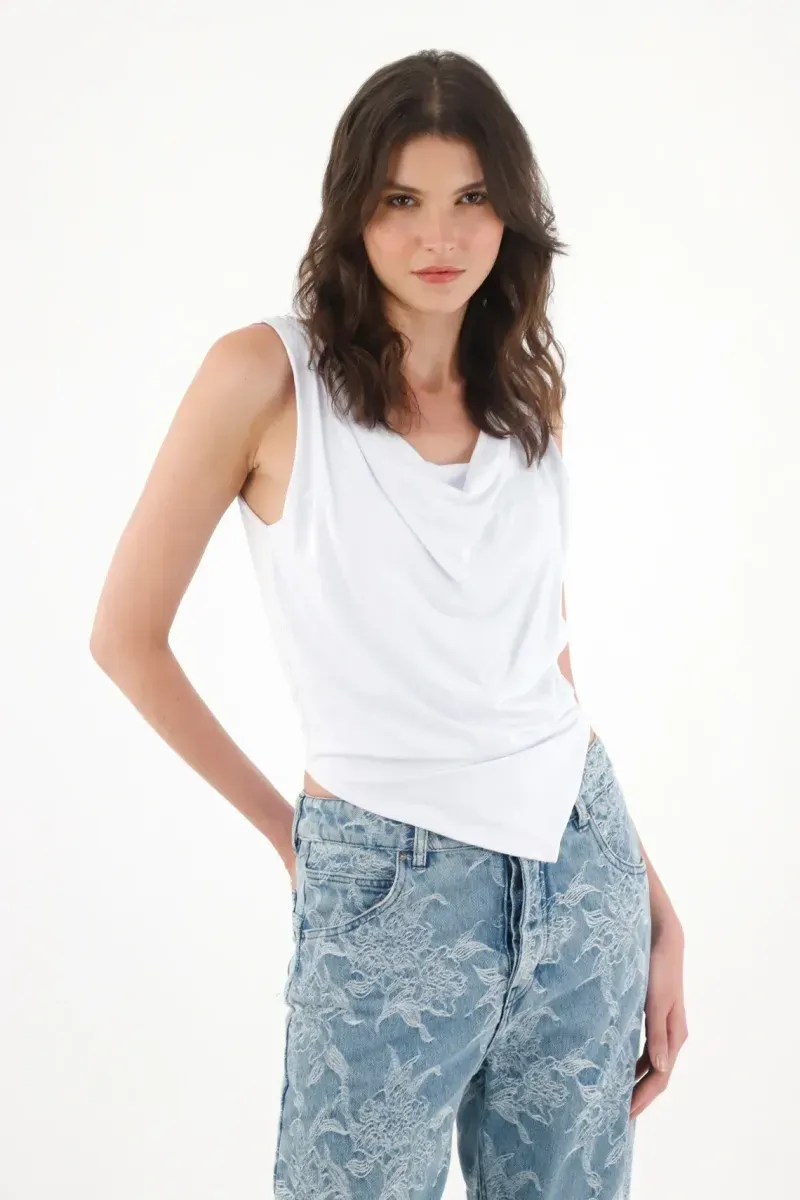 Camiseta con drappeado blanca para mujer