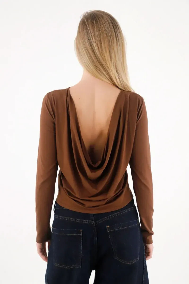 Camiseta con drappeado café para mujer