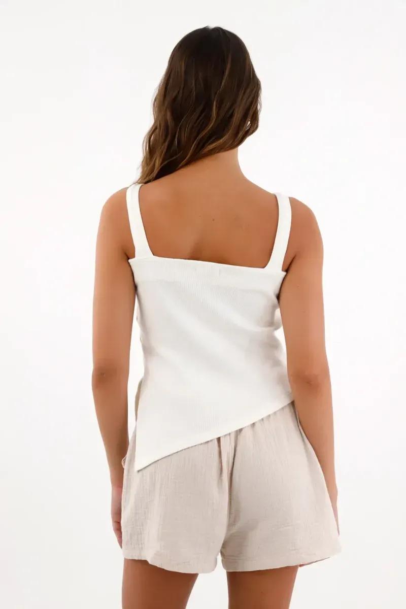 ¡Romantiza tus días con básicas perfectas! Con una silueta ajustada y tiras anchas que enmarcan los hombros, esta camiseta reinventa lo básico con un toque moderno: su ruedo asimétrico en diagonal aporta dinamismo y una dosis sutil de actitud. Confeccionada en rib de canal pequeño, abraza el cuerpo con suavidad y mantiene su forma con el paso del tiempo. Ideal para combinar con prendas de tiro alto o como base de looks en capas. Sobre la colección: Hace parte de nuestra colección de esenciales con carácter, donde cada detalle transforma lo cotidiano en algo especial.