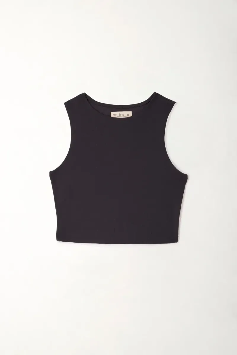 RopaMujerCamisetasCamiseta crop en rib negra para mujer