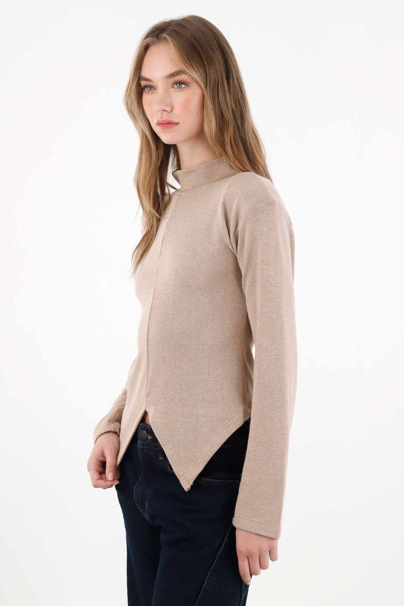 Confeccionada en tela suave de tacto delicado y ligero. Manga larga, cuello tortuga y un ajuste cómodo que te permitirá estar cómoda y segura en cada paso. Su detalle de terminación de púntas en delantero la convierte en una pieza icónica.
