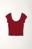 RopaMujerCamisetasCamiseta en rib ajustada roja para mujer