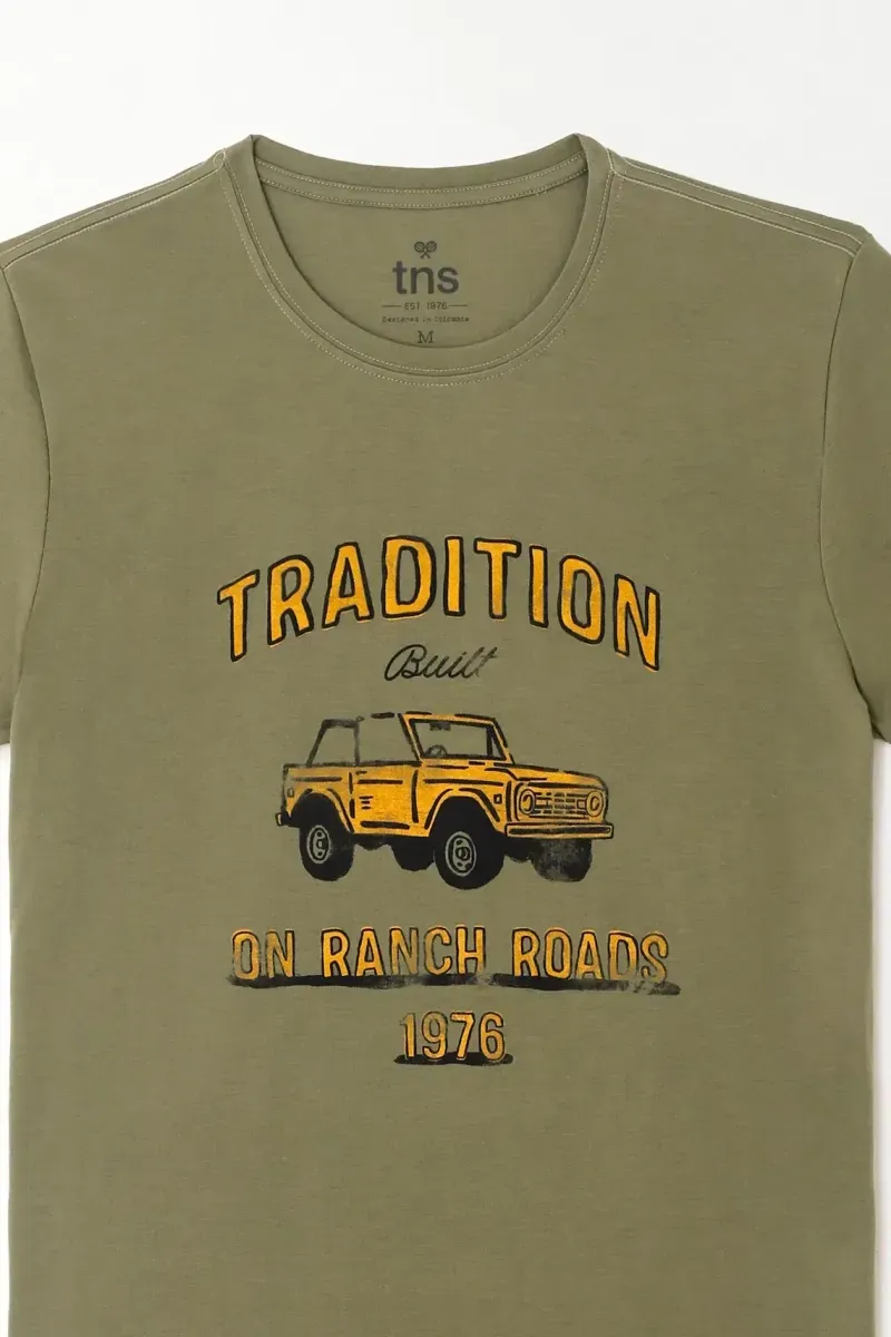 Camiseta gráfica para hombre algodón verde oliva regular fit 1976