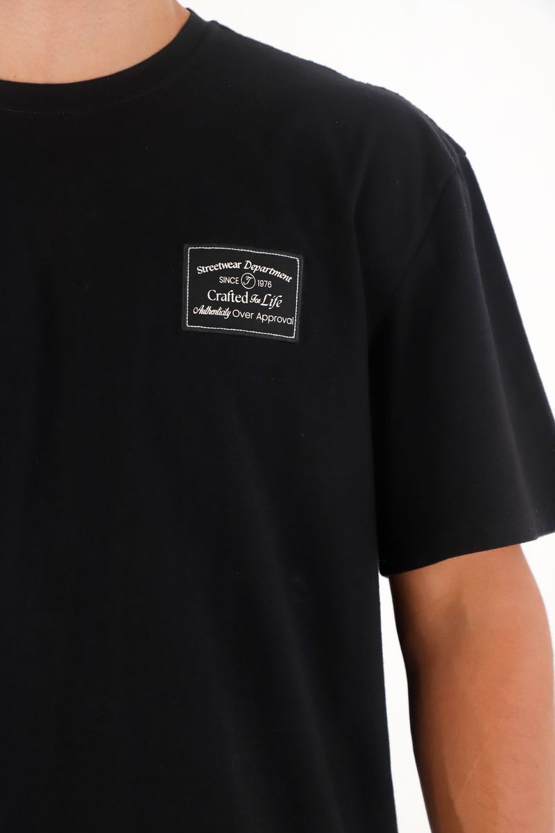 ¡El básico que nunca es tan básico cuando lleva nuestro sello! Esta camiseta en jersey eleva cualquier look con su corte relajado y detalles que marcan la diferencia.