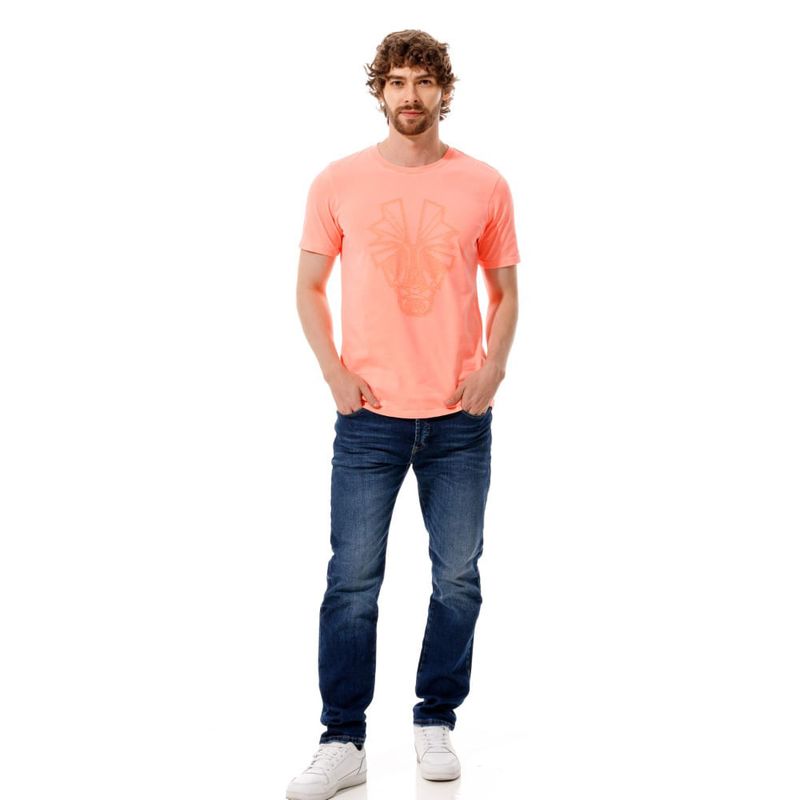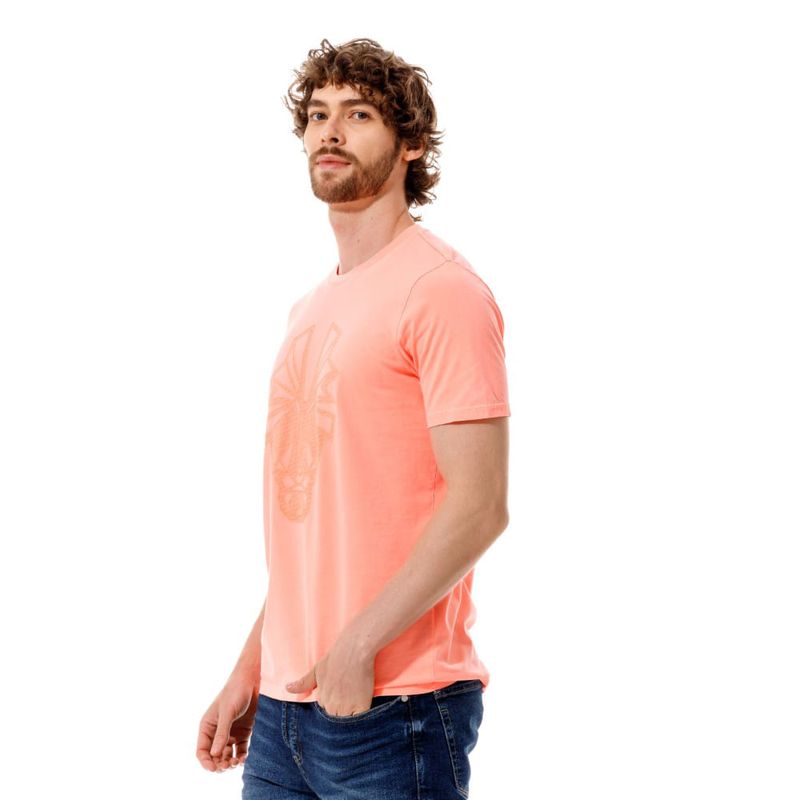 Camiseta con cuello redondo en rib y manga corta. Confeccionado en 100% algodón. Efecto lavado. Estampado en frente con técnica en alta densidad.