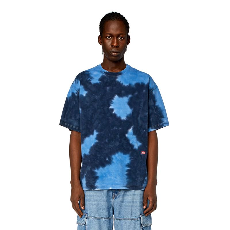 Esta camiseta para hombre tiene un fit relaxed y está confeccionada en tejido de algodón grueso. Está tratada para lograr un look retro tie-dye, y sutilmente marcada con una transferencia de etiqueta Diesel roja en el lateral.