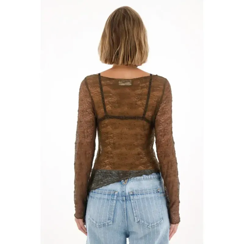 ¡Un guiño audaz a la feminidad moderna! Esta camiseta en blonda con transparencias es la pieza que redefine el estilo boho con un aire actual y sofisticado.