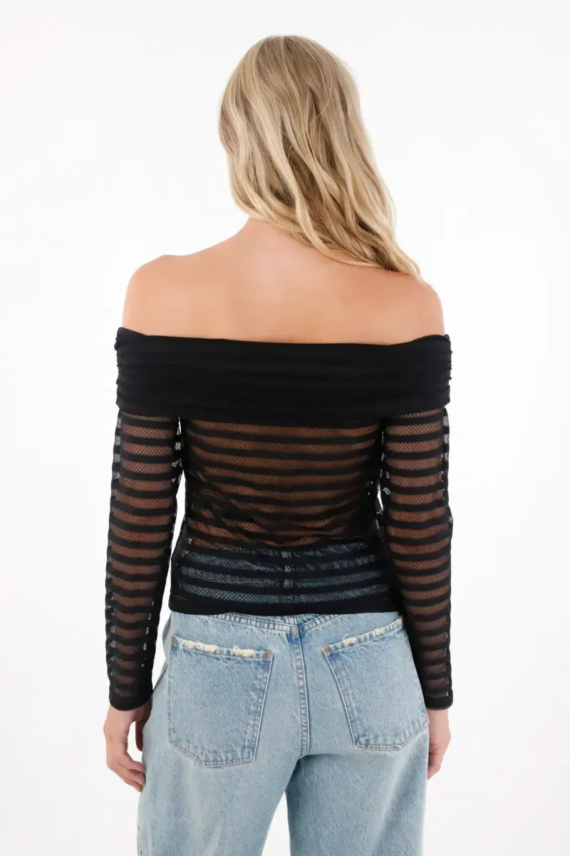 Su diseño de manga larga con cuello bandeja le da un aire moderno y femenino, mientras que la tela con textura se convierte en ese detalle sutil que marca la diferencia en tu look.