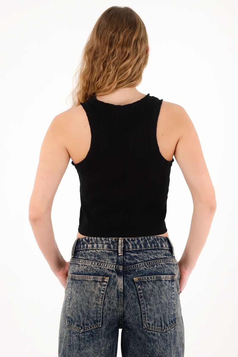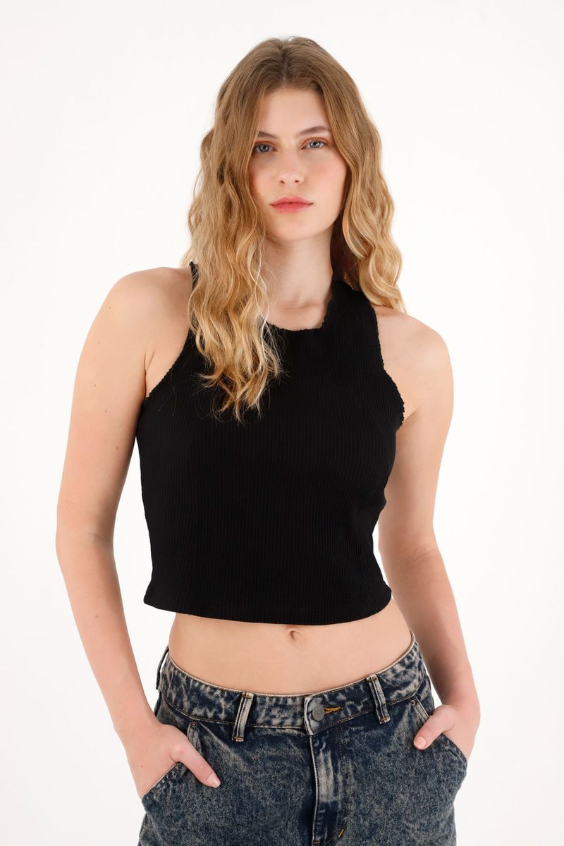 Confeccionada en rib para un fit cómodo y favorecedor.