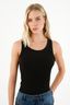 ¡Juvenil y descomplicada! Esta camiseta negra, será tu mejor aliada para tus looks cotidianos. Su diseño con cuello redondo, fondo entero y manga sisa, le dan el toque básico que combina con todo.