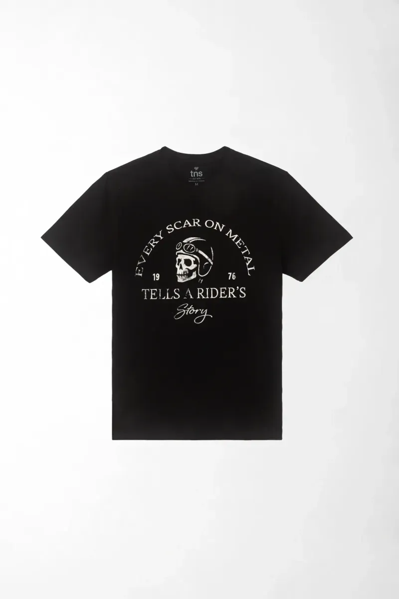 Camiseta para hombre algodón negro fit regular con gráfico motero