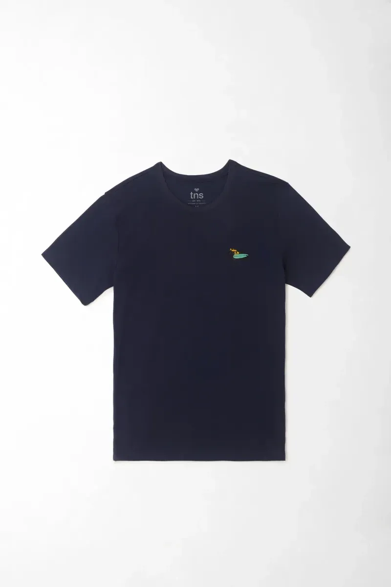 Esta camiseta gráfica de Tennis convierte lo sutil en protagonista: un mini bordado delantero en el pecho que dice mucho sin gritar, perfecto para sumar identidad a tu día a día. El tejido en mezcla de algodón y poliéster se siente suave al tacto, respira bien y conserva la forma después de cada lavado, para que siempre te veas prolijo. El corte regular cae recto sobre el cuerpo y te da libertad de movimiento, mientras el cuello redondo acanalado mantiene la estructura y no cede con el uso. El azul marino profundo limpia el look y realza el detalle de color del gráfico, logrando una prenda fácil de combinar y con vibra urbana.