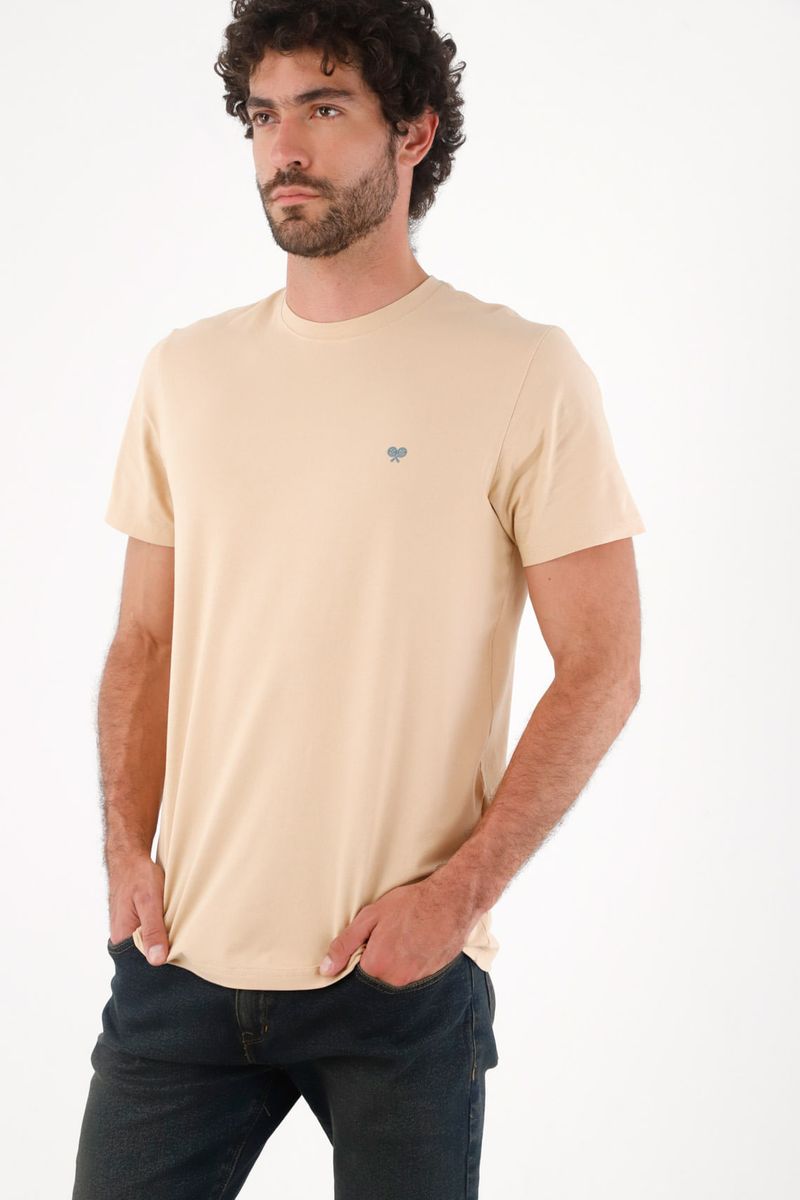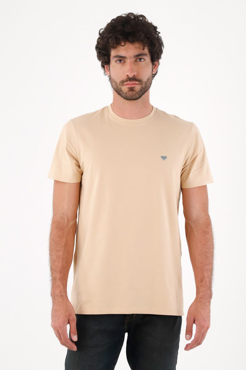 RopaHombreCamisetasCamiseta para hombre de algodón beige fit clásico con bordado