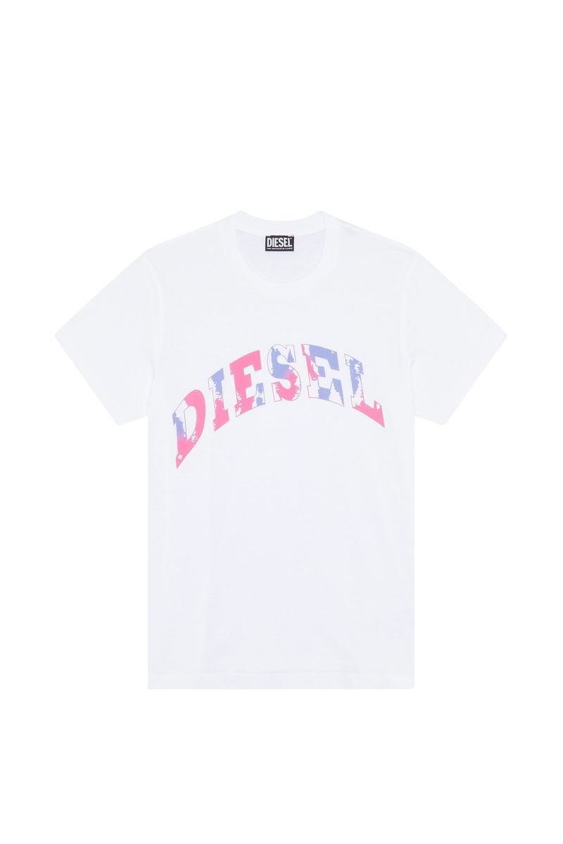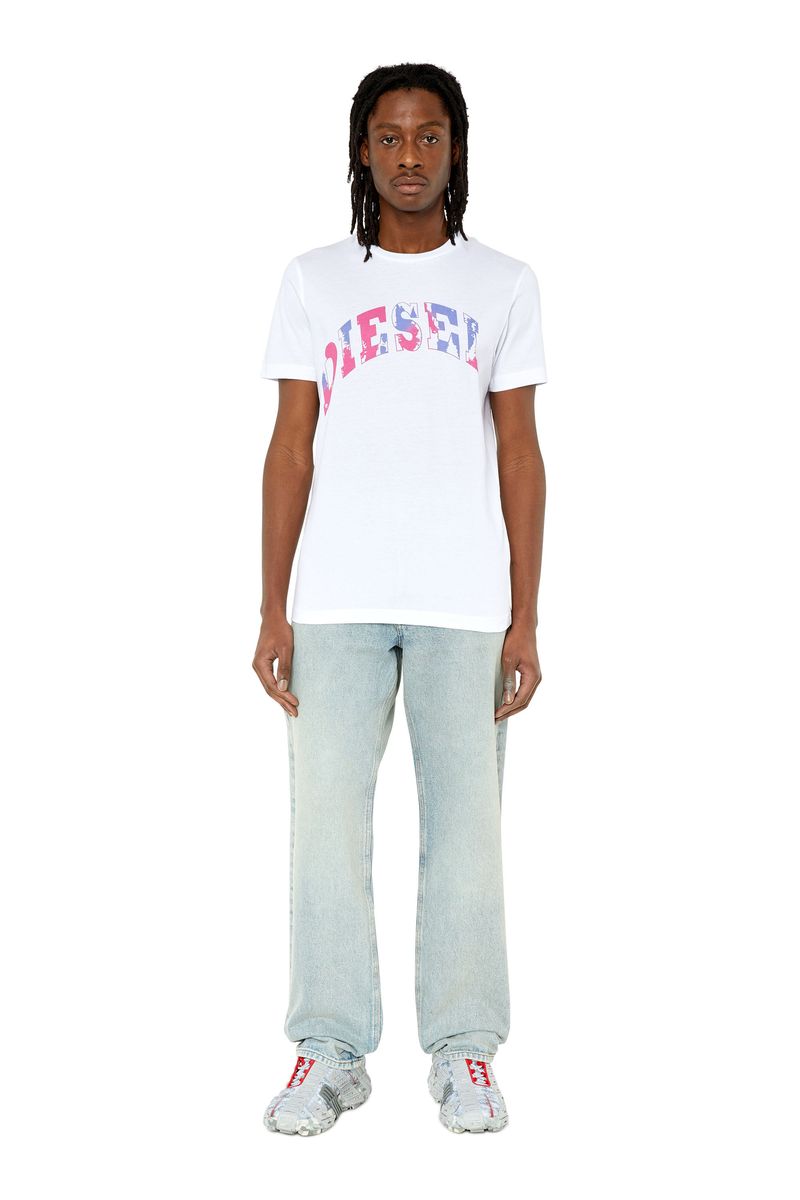 Camiseta de fit entallado para hombre hecha de suave tejido de algodón. Tiene un estampado curvo y delineado de Diesel que adorna el pecho y presenta un patrón veteado de dos tonos. Corte ajustado - El modelo viste una talla L y mide 182 cm 100%Algodón País Origen: Vietman