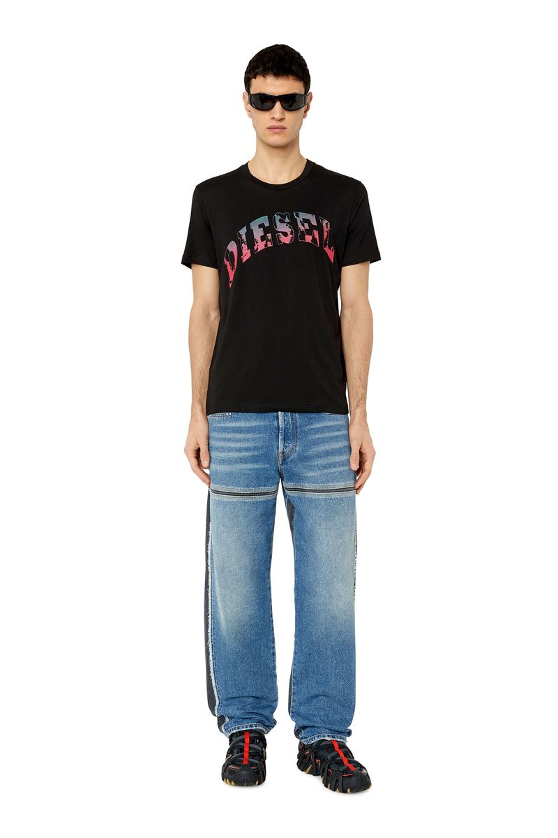 Camiseta de fit entallado para hombre hecha de suave tejido de algodón. Tiene un estampado curvo y delineado de Diesel que adorna el pecho y presenta un patrón veteado de dos tonos. Corte ajustado - El modelo viste una talla L y mide 182 cm 100%Algodón País Origen: Vietman