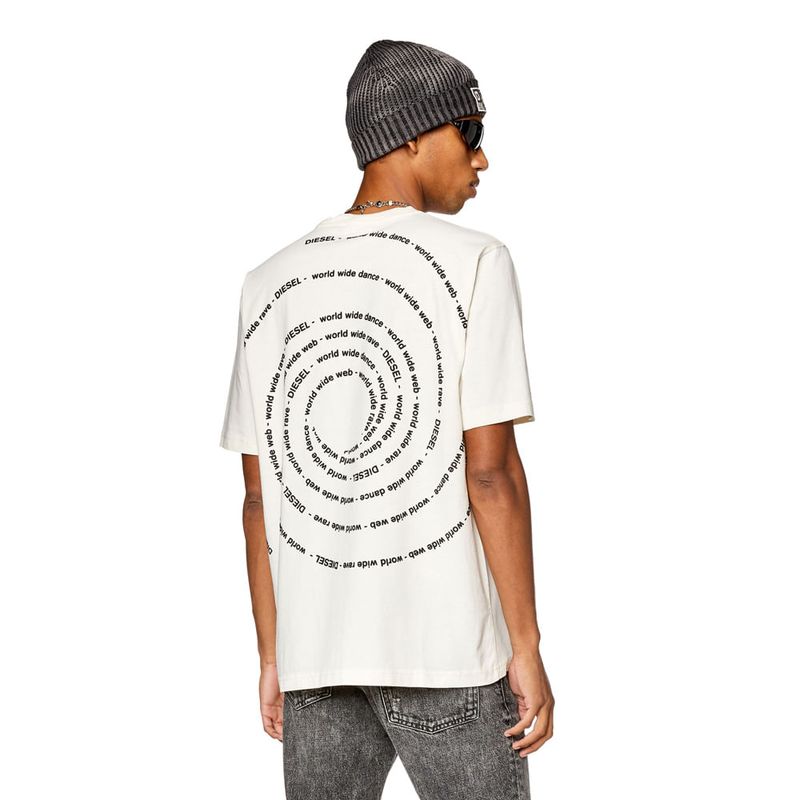 Esta camiseta de fit regular para hombre está hecha de tejido de algodón de efecto crudo. Las palabras Diesel 'World Wide’ en espiral están estampadas en relieve en la parte trasera, mientras que una transferencia de etiqueta Diesel adorna la parte delantera. Está teñido en prenda para lograr un aspecto desteñido. Corte regular Cuello redondo en canalé - El modelo viste una talla L y mide 182 cm 100%Algodón País Origen: Vietman