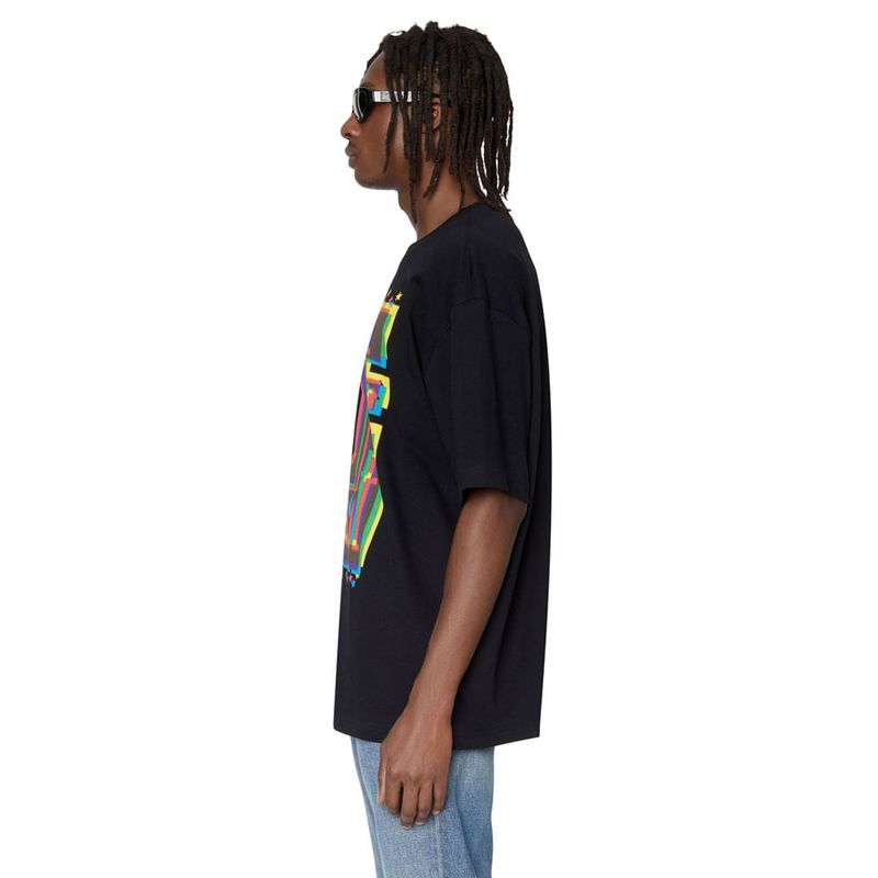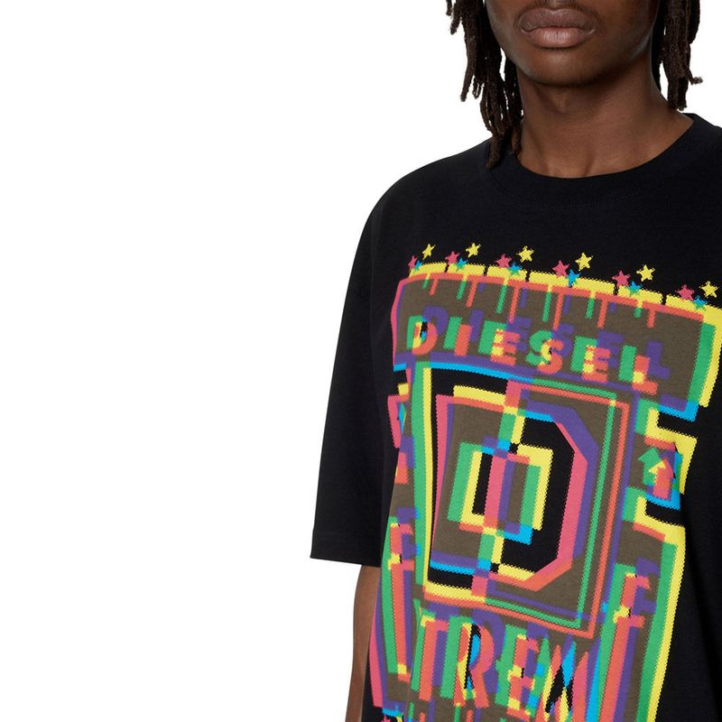 Diesel es una innovadora marca internacional de estilo de vida que produce una amplia colección de jeans, ropa y accesorios. Somos pioneros en denim y con el pasar de los años nos convertimos en una marca de ropa casual premium, siendo una verdadera alternativa en el mercado de lujo establecido. Somos una marca que representa la pasión, la individualidad y la autoexpresión. El Mundo DIESEL te espera. Esta camiseta para hombre presenta un gráfico tricolor del logotipo estampado con un efecto tridimensional estereoscópico. Hecha de algodón y de aspecto crudo, tiene forma extragrande y un parche 'X55’ en jacquard en la nuca. 100%Algodón País Origen: China El modelo viste una talla L y mide 182 cm
