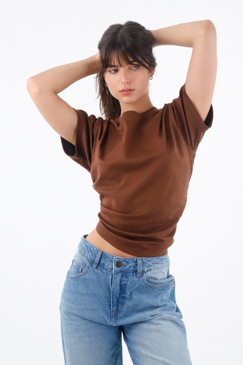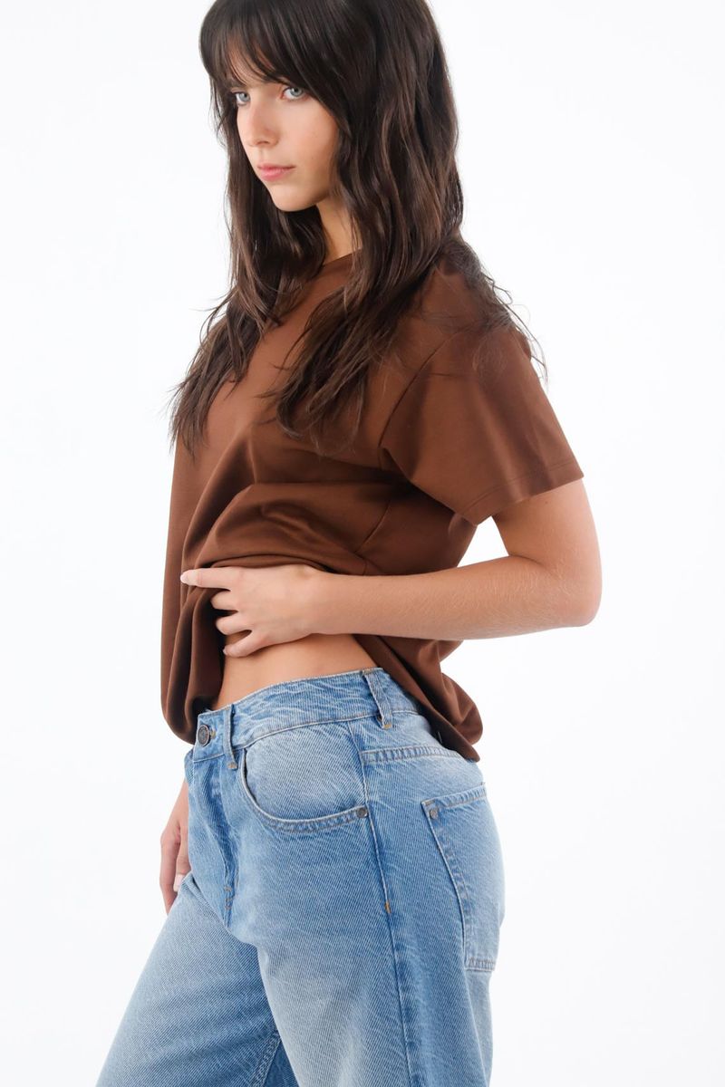 Café intenso y mangas amplias: vibra chill con actitud. Un básico TNS con alma urbana: esta camiseta de algodón 100% luce un tono café profundo que suma calidez y combina fácil con denim y neutros. Las mangas amplias y el corte recto crean una silueta relajada que da movimiento sin perder estructura. El cuello redondo limpio refuerza el look minimal y deja que el color sea el protagonista.