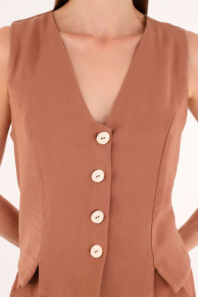 RopaMujerChalecosChaleco café de tela fluida para mujer