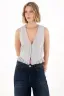 ¡Femenino, ligero y sofisticado! Este chaleco juega con mezclas de telas y texturas, logrando un diseño que es a la vez romántico y actual.