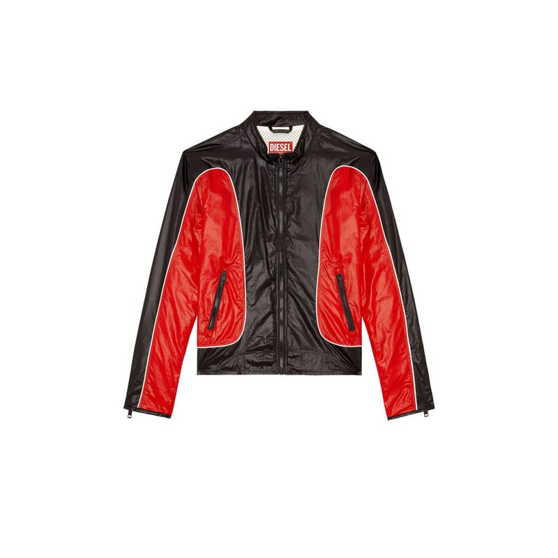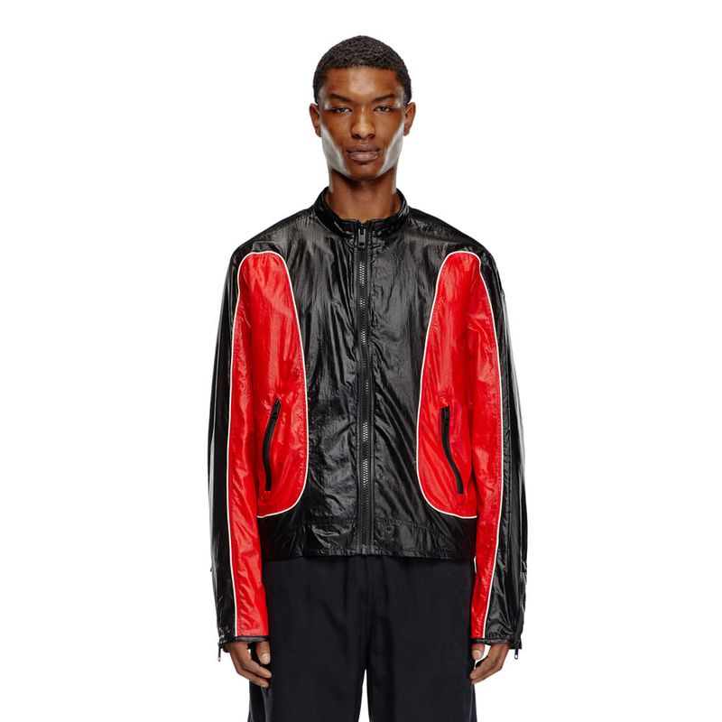 Chaqueta casual para hombre j-clays. Esta chaqueta biker para hombre, hecha con materiales reciclados, reelabora una silueta de motorista con paneles de micro ripstop y chintz, que se caracteriza por su acabado brillante y esmaltado. con diseño de fit regular, tiene ribetes y un interior forrado en malla. un logotipo oval d discreto adorna la manga.