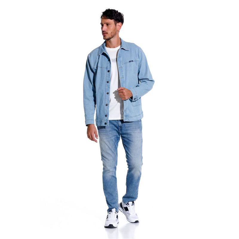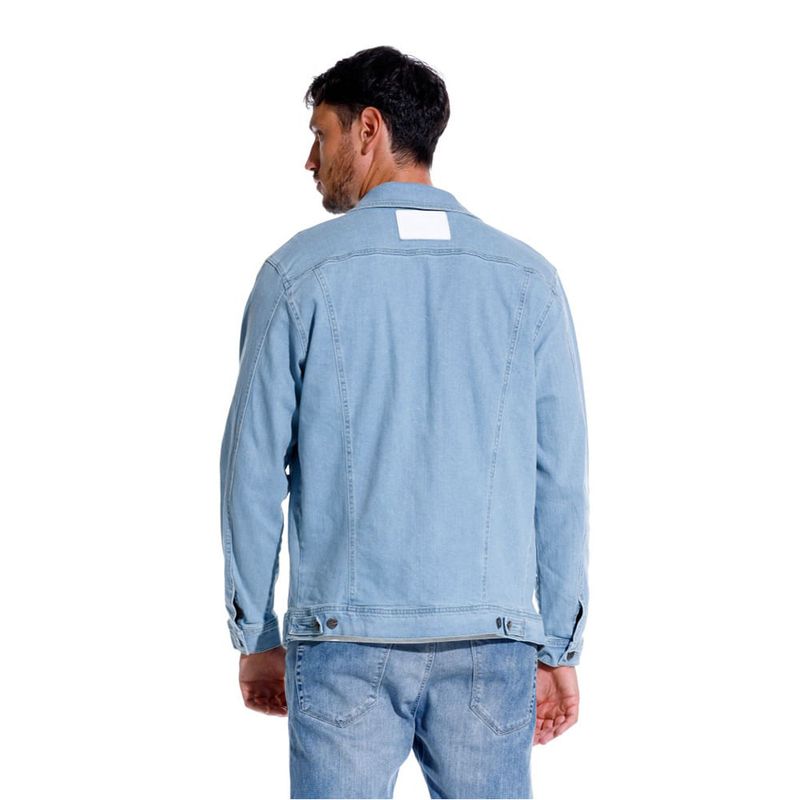 Chaqueta en denim con botones en delantero. Efecto lavado azul medio. Aplique en posterior.