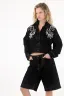 Sobre la colección: Hace parte de una propuesta pensada para mujeres que buscan prendas con personalidad, texturas especiales y detalles que marcan la diferencia. Diseñada para combinarse en set con la bermuda en la misma tela, pero también perfecta para elevar jeans, pantalones de tiro alto o faldas modernas.