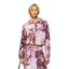Chaqueta rompe vientos para mujer g-windor-n1. este anorak para mujer lleva estampadas escamas de serpiente, vallas de metal y flores tropicales que crean un patrón abstracto ‘camouflower’ en tonos rosas de múltiples profundidades. está confeccionado en nailon arrugado, tiene forma cuadrada de globo y un forro de malla. un logotipo oval d bordado adorna la manga.